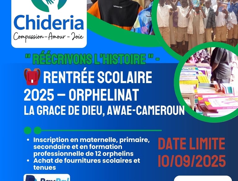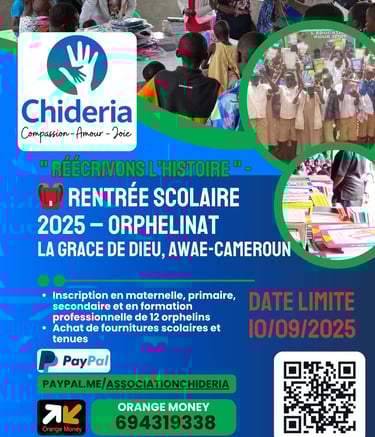 CHIDERIA intensifie son impact humanitaire au Cameroun. Voici trois actions majeures prévues cette année, centrées sur l'éducation, la réinsertion et le soutien aux plus vulnérables.