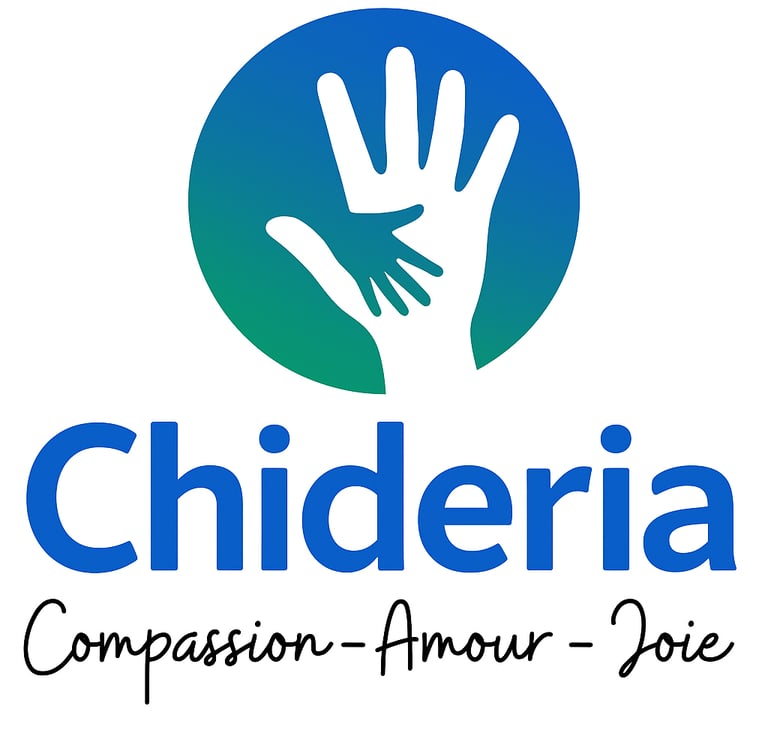 Le nom CHIDERIA, qui signifie « Dieu a écrit », traduit cette conviction profonde que chaque vie compte, que chaque destin mérite d’être respecté, aimé et soutenu. L’association se donne pour mission d’agir concrètement auprès des orphelins, veuves, personnes handicapées, enfants des rues et populations déplacées en Afrique, en leur tendant la main avec compassion, amour et joie.